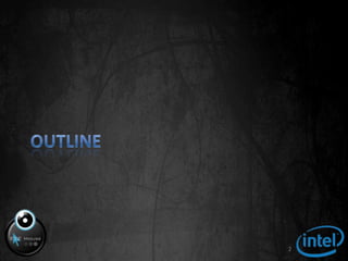 The document presents 'Eye Mouse', a real-time gaze determination software that enables users to control a computer cursor through eye movement, aiming to aid disabled individuals in using computers. It outlines the technical design, implementation, and advantages of the software, including features, performance metrics, and market analysis. Additionally, it discusses future development prospects such as iris tracking and 3D positioning capabilities.