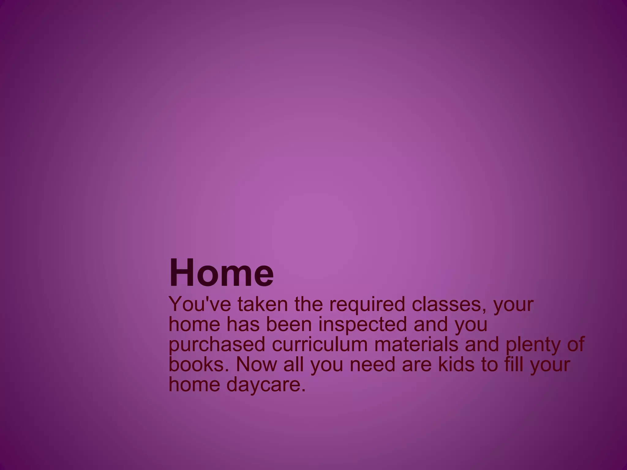 The document provides a guide for setting up a home daycare, including necessary steps like course completion and home inspection. It also outlines how to build a porch on a mobile home with basic woodworking skills and offers instructions for using a water level in construction. Additional information can be found on various related websites.