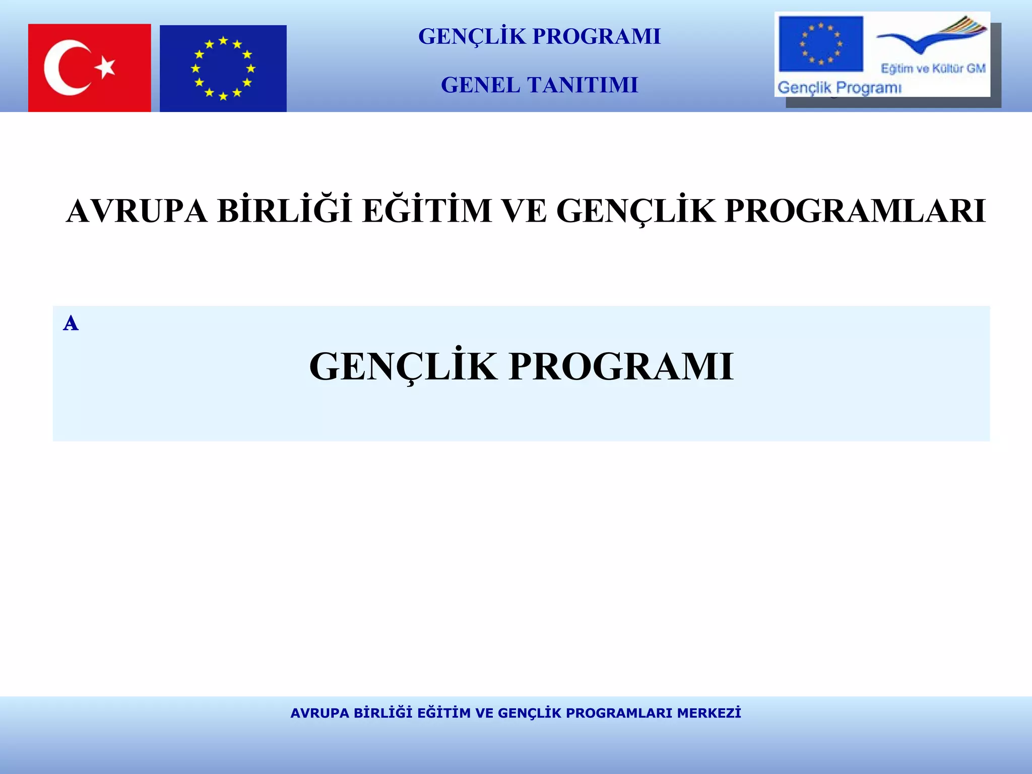 AVRUPA BİRLİĞİ EĞİTİMVE GENÇLİK PROGRAMLARI GENÇLİK PROGRAMI GENÇLİK PROGRAMI GENEL TANITIMI