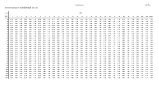 ตารางการแจกแจง F ขอขอบคุณข้อมูลจาก วัดผลจุดคอม (http://www.watpon.com/table/FDistribution.pdf)