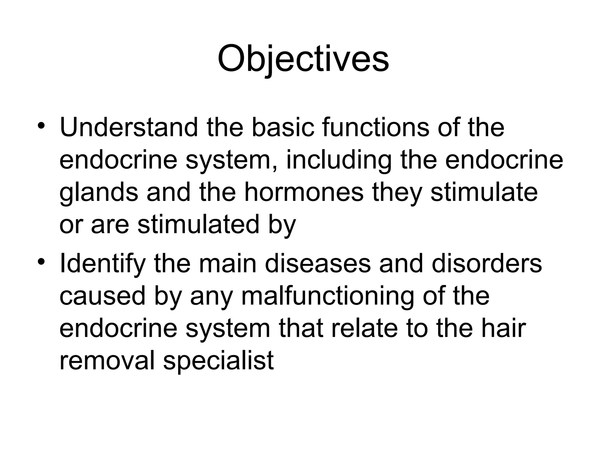 The document discusses the endocrine system and conditions related to abnormal hormone levels. It describes the major endocrine glands like the pituitary, thyroid, adrenals, pancreas and gonads. It explains disorders that can occur when hormone levels are too high or low, such as hyperthyroidism, hypothyroidism, Cushing's syndrome, and diabetes. It also discusses conditions of abnormal hair growth like hirsutism and hypertrichosis that can be caused by endocrine disorders.
