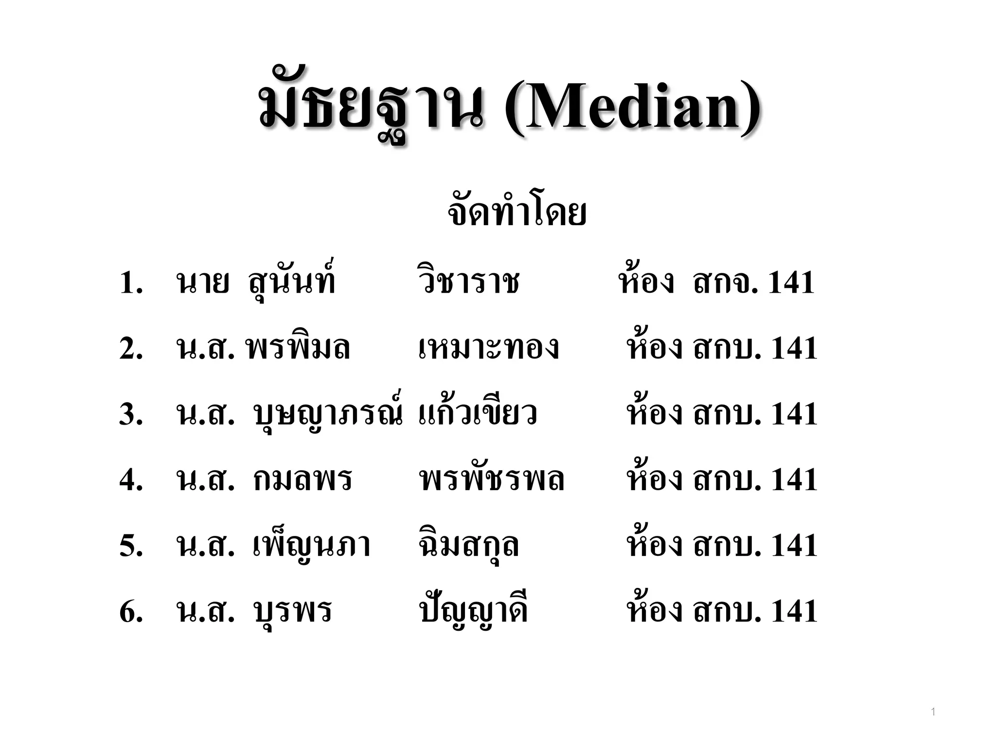 มัธยฐาน (Median) คือตาแหน่งกึ่งกลางข้อมูล