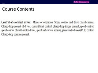The document outlines Unit 6 on the control of electrical drives, taught by Mr. Rohit Ghulanavar to second-year B.Tech Mechanical students. It includes course contents focused on multiquadrant operation. The document concludes with a thank you note.