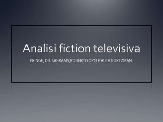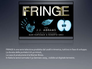 Fringe è una serie TV prodotta dal 2008 che segue una squadra della polizia che affronta eventi paranormali, composta da Olivia Dunham, Walter Bishop e Peter Bishop. La trama esplora la scoperta di mondi alternativi e conflitti tra di essi, con elementi di mistero e complessità narrativa tipica delle produzioni di J.J. Abrams. La serie, nonostante le eventuali difficoltà di audience, ha mantenuto l'attenzione del pubblico grazie a colpi di scena e rivelazioni nel corso delle stagioni.