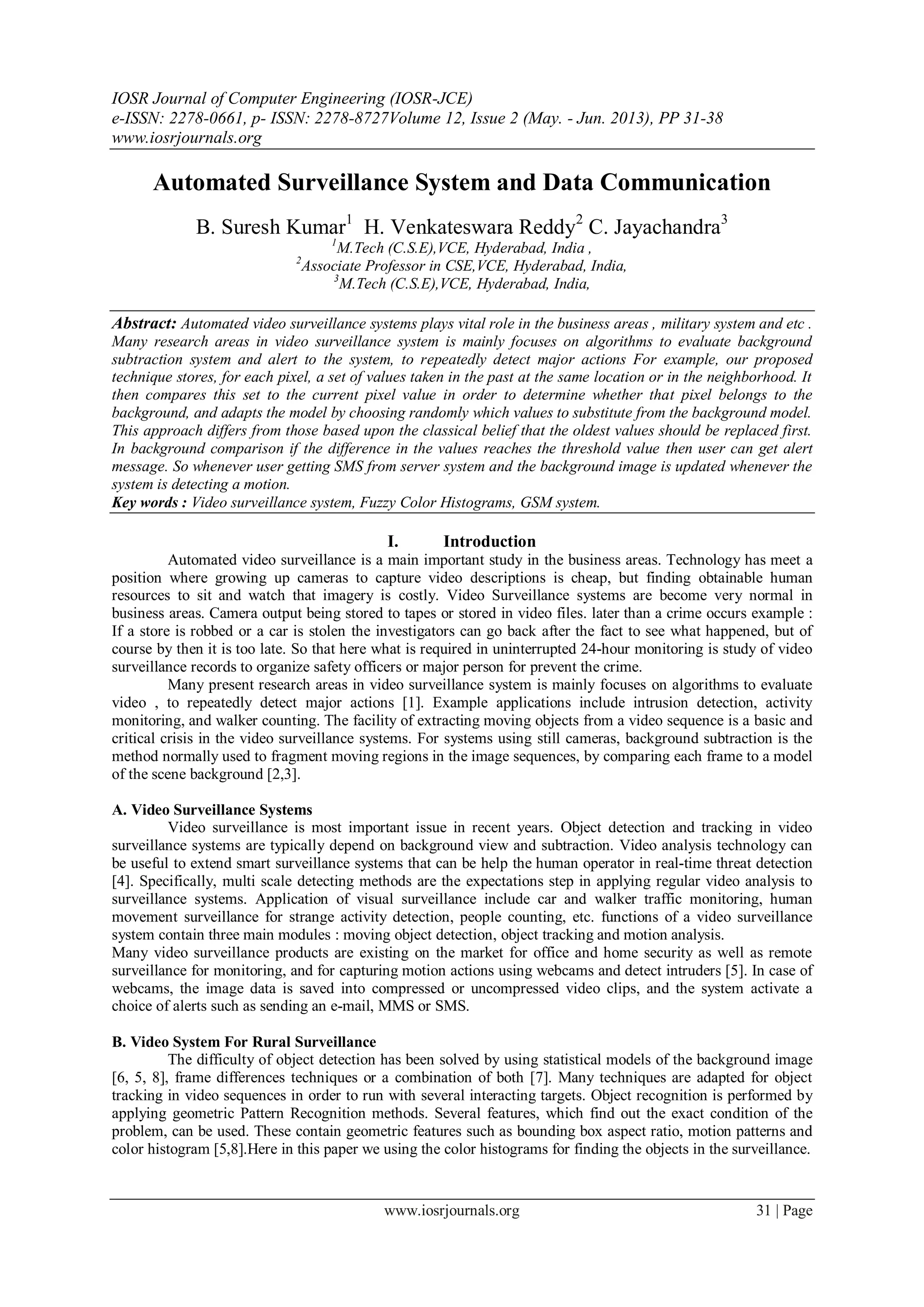 This document summarizes an automated video surveillance system that uses fuzzy color histograms (FCH) for background subtraction. It begins with an introduction to automated video surveillance and challenges with background subtraction. It then describes how the system works, including: