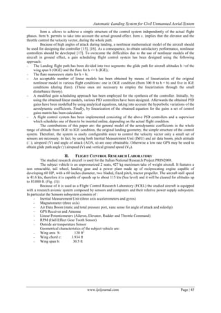 1) The document describes the design of an automatic landing system for unmanned aerial vehicles that accounts for ground effect.