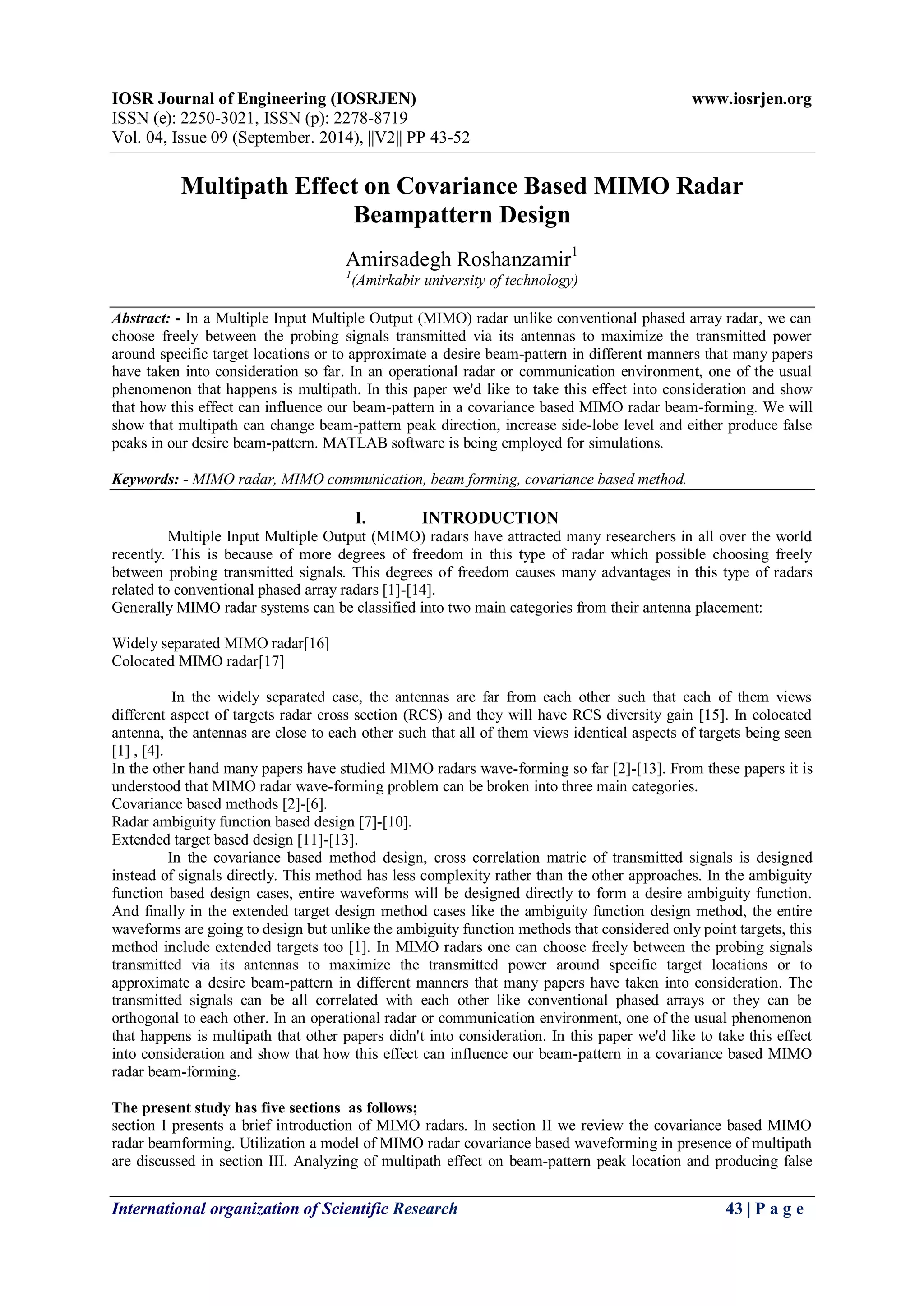 This document discusses the effect of multipath on covariance-based beamforming in MIMO radar.