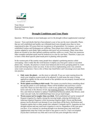- Established warm season turf can be weaned off frequent watering by raising the mowing height, reducing fertilizer, and allowing dormancy, while centipede and St. Augustine grass may need more water to survive prolonged