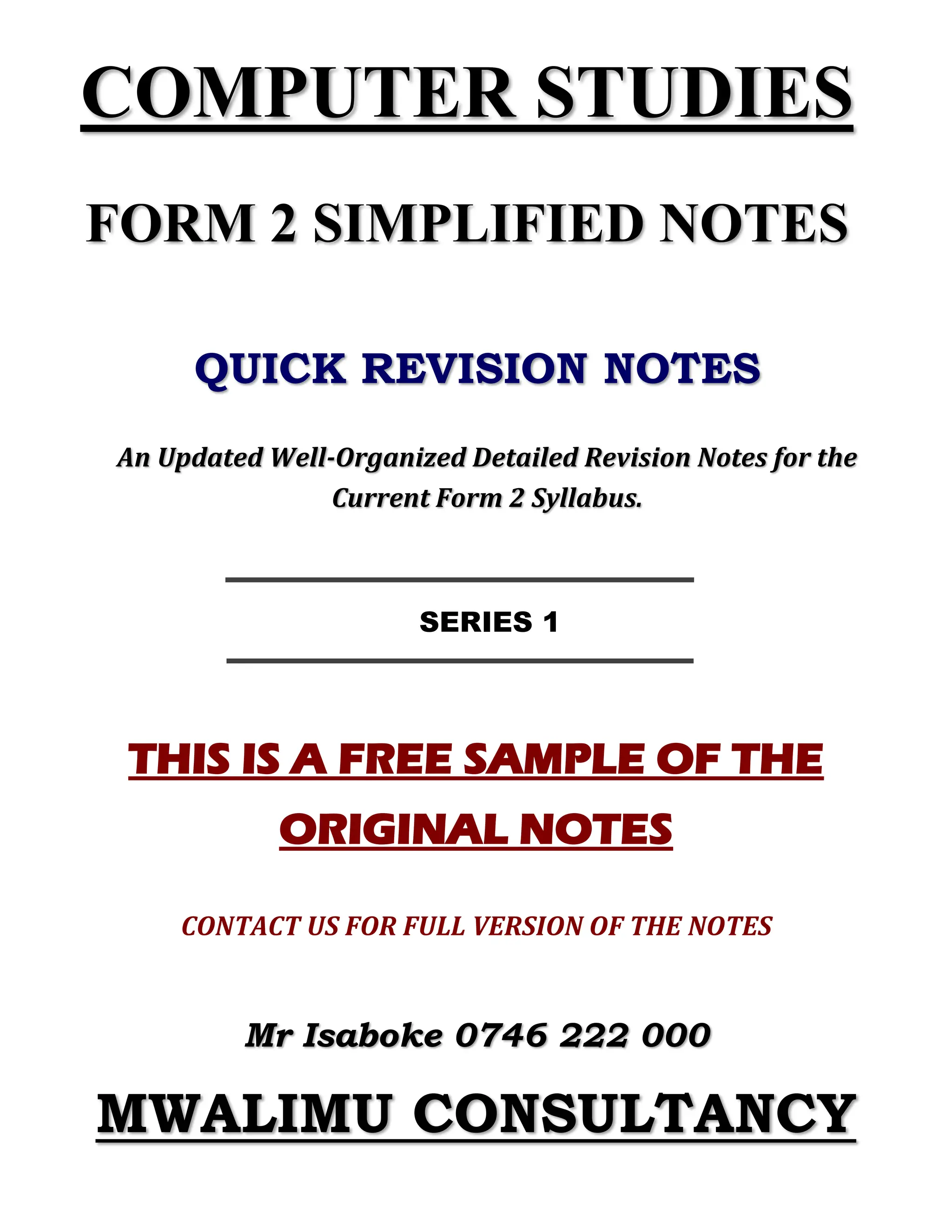 This document provides simplified revision notes for Form 2 computer studies, covering the current syllabus, particularly focusing on word processors. It defines a word processor, discusses its features, and explains its purpose in document creation for communication. Additionally, it includes instructions on using Microsoft Word and offers exercises for students to practice their skills.