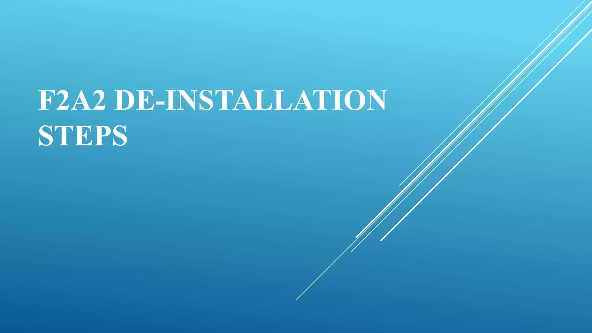 The 7 step document outlines the process for de-installing an F2A2 application. It involves logging into the F2A2 application, selecting a de-installation ticket, providing details about POS terminals and status, entering disposition remarks including location details and amount, submitting the details and merchant mobile number, and clicking OK to complete the de-installation.