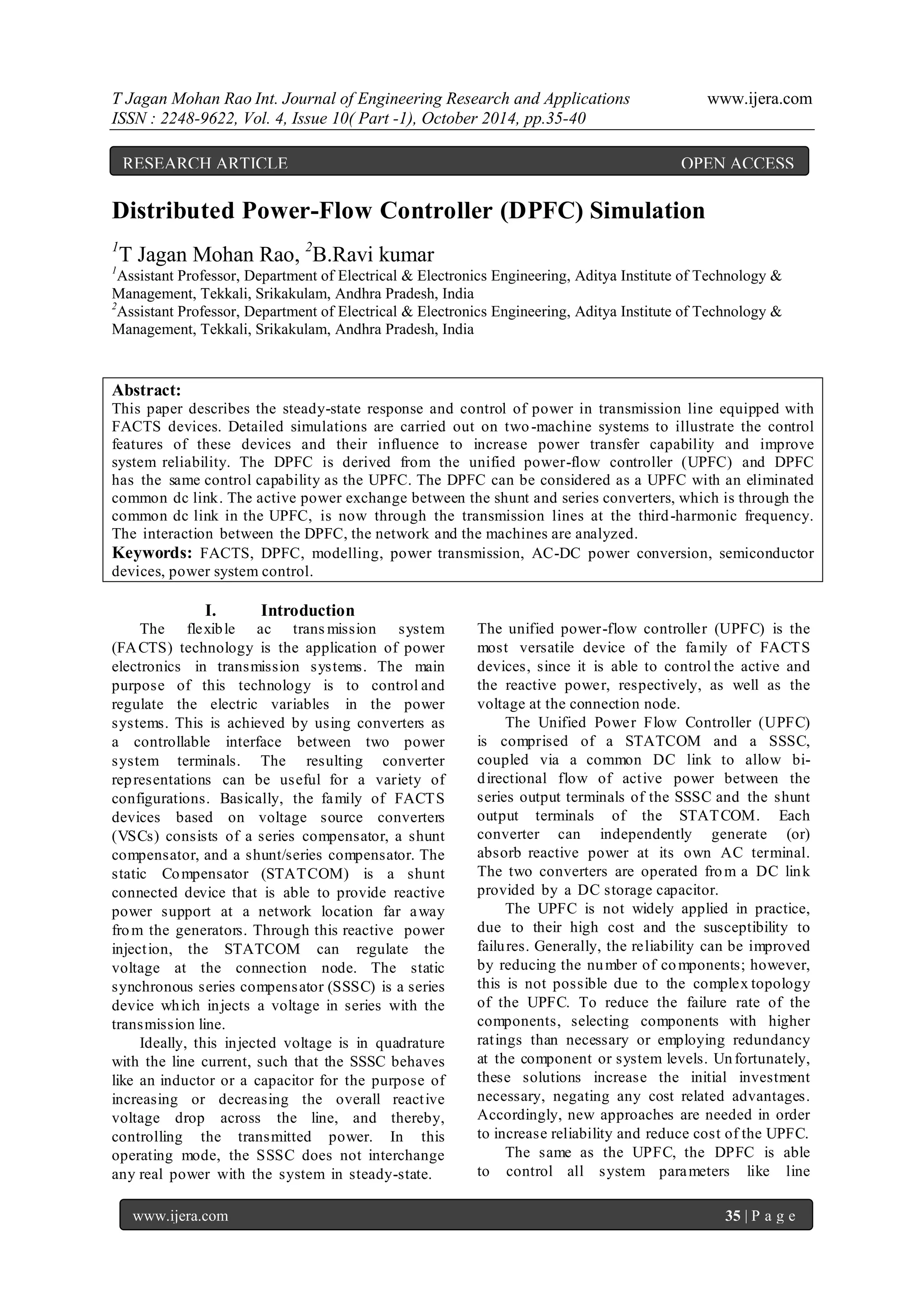 - DPFC is derived from Unified Power Flow Controller (UPFC) but eliminates the common DC link between shunt and series converters. Active power is exchanged through the transmission line using third-harmonic frequency components.