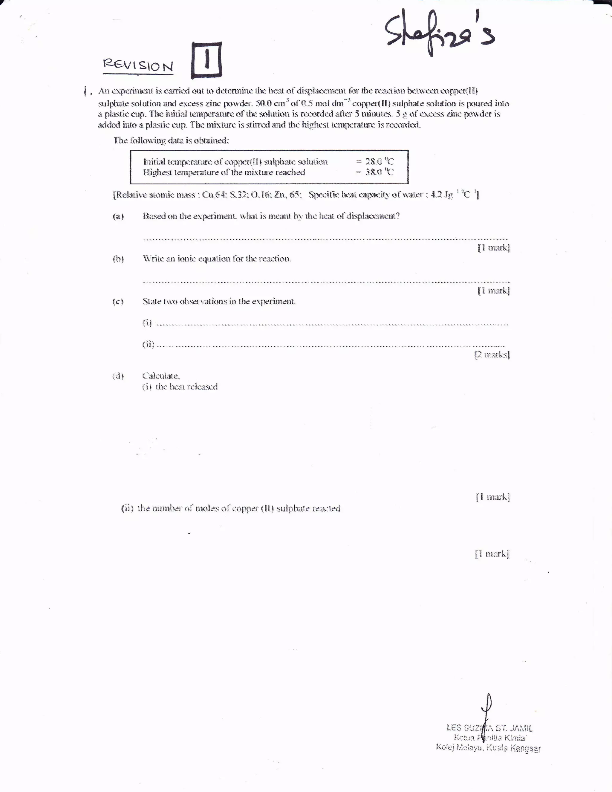 (iii) Potassium chloride is added to neutralize any excess hydroxide ions produced during the reaction which could otherwise cause soap to decompose.