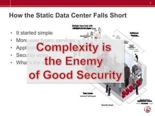 This document discusses Advanced Dynamic Services for Unified Access and Control provided by F5's BIG-IP Access Policy Manager. It summarizes how BIG-IP APM can dynamically configure access based on user identity and context to securely deliver applications to any user on any device. It also highlights how BIG-IP APM scales to support growing numbers of mobile users and ensures strong endpoint security.