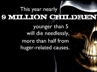 #3Â This year nearly 9 million children younger than the age of 5 will die needlessly, and more than half will be from hunger-related causes.