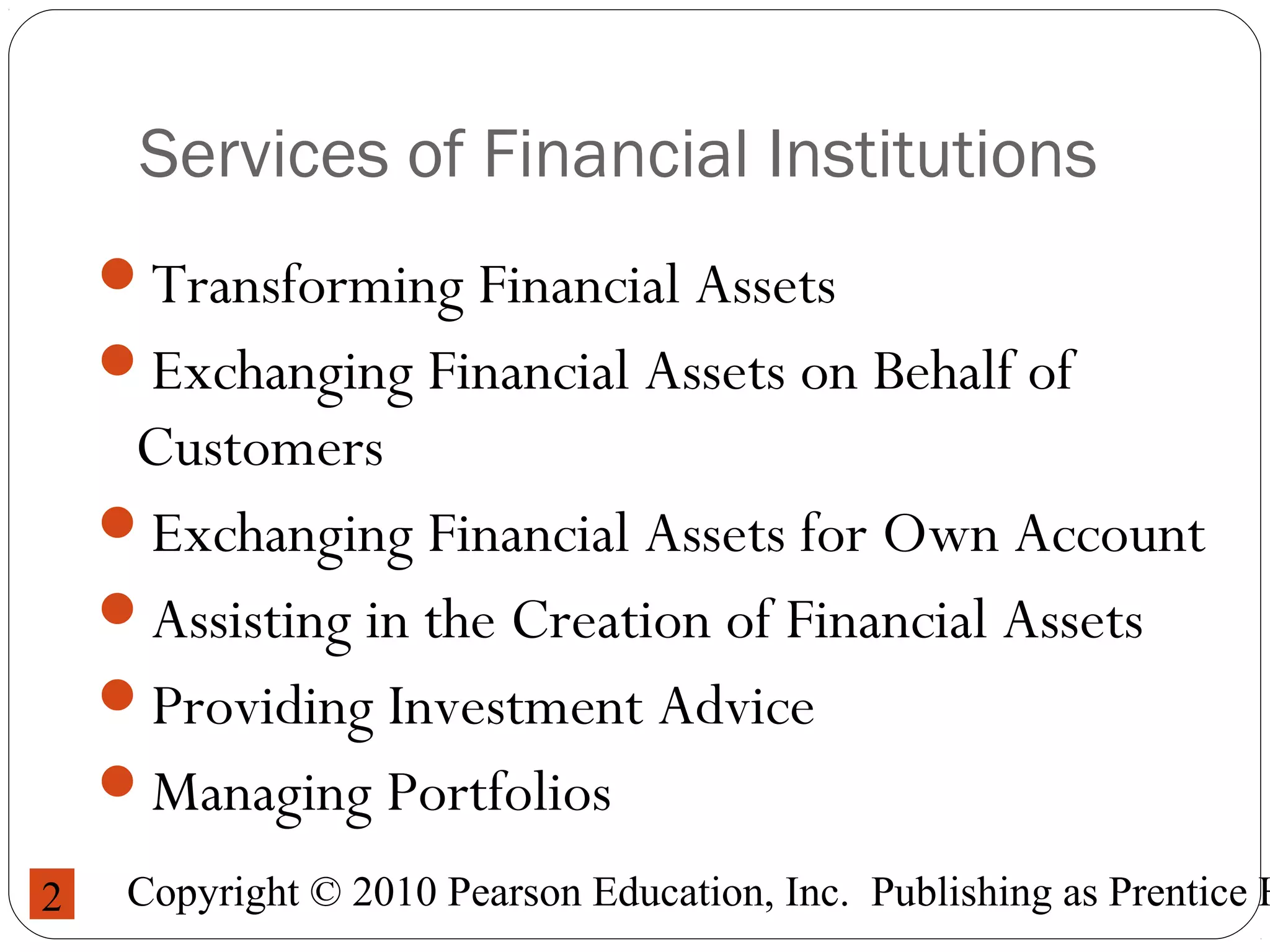 The document discusses the services and roles of financial institutions and intermediaries, including asset management, portfolio management, and risk reduction. It also elaborates on asset/liability management, various types of investment, especially hedge funds, and outlines regulatory concerns. Additionally, it addresses the fee structures and compensation across different types of funds managed.