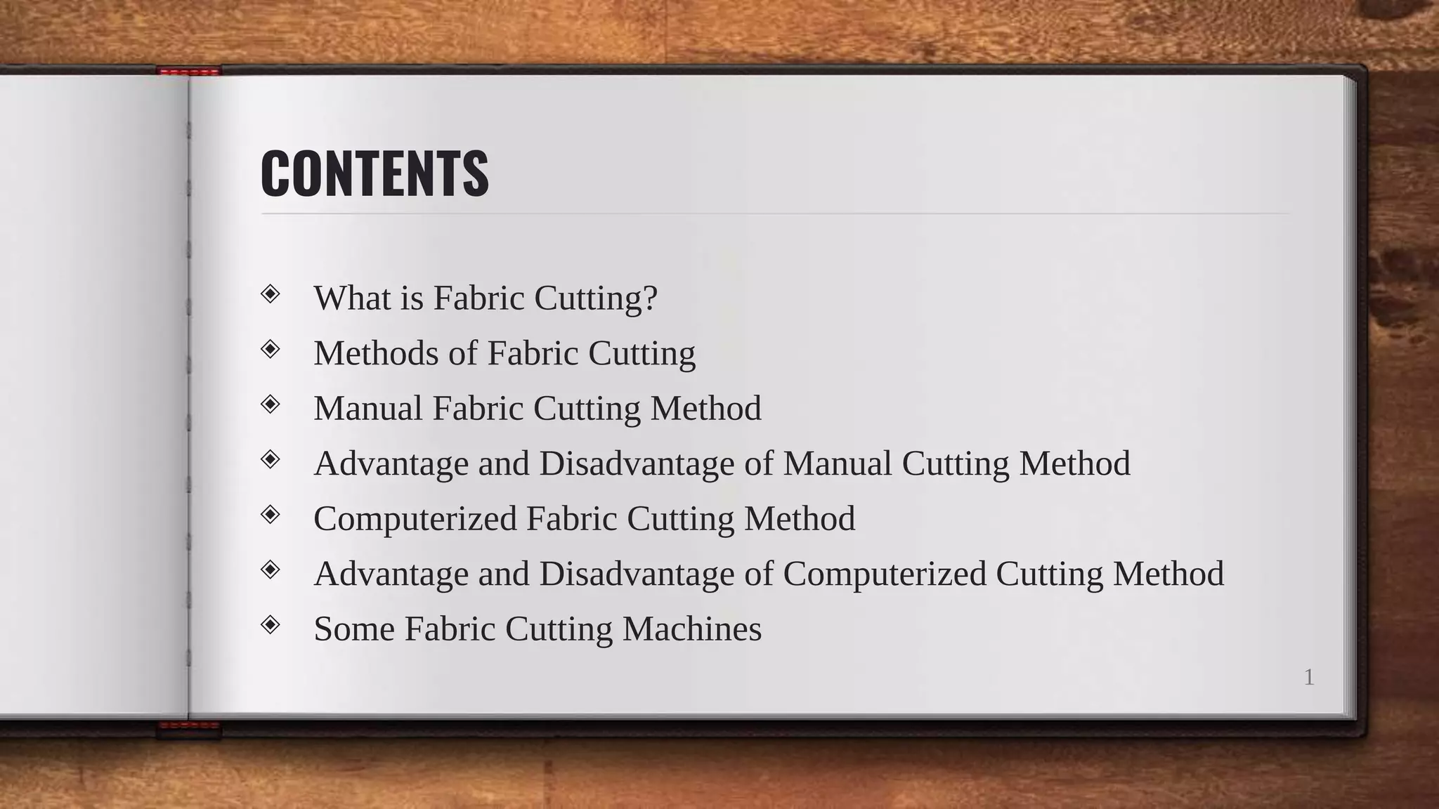 The document discusses fabric cutting methods in the garment manufacturing industry, highlighting manual and computerized techniques. The manual cutting method is affordable but slower and less efficient for large production, whereas the computerized method offers speed and precision but requires skilled labor and higher costs. Various machines used for cutting, like round knife, band knife, and laser cutting machines, are also described, showcasing their specific advantages and applications.