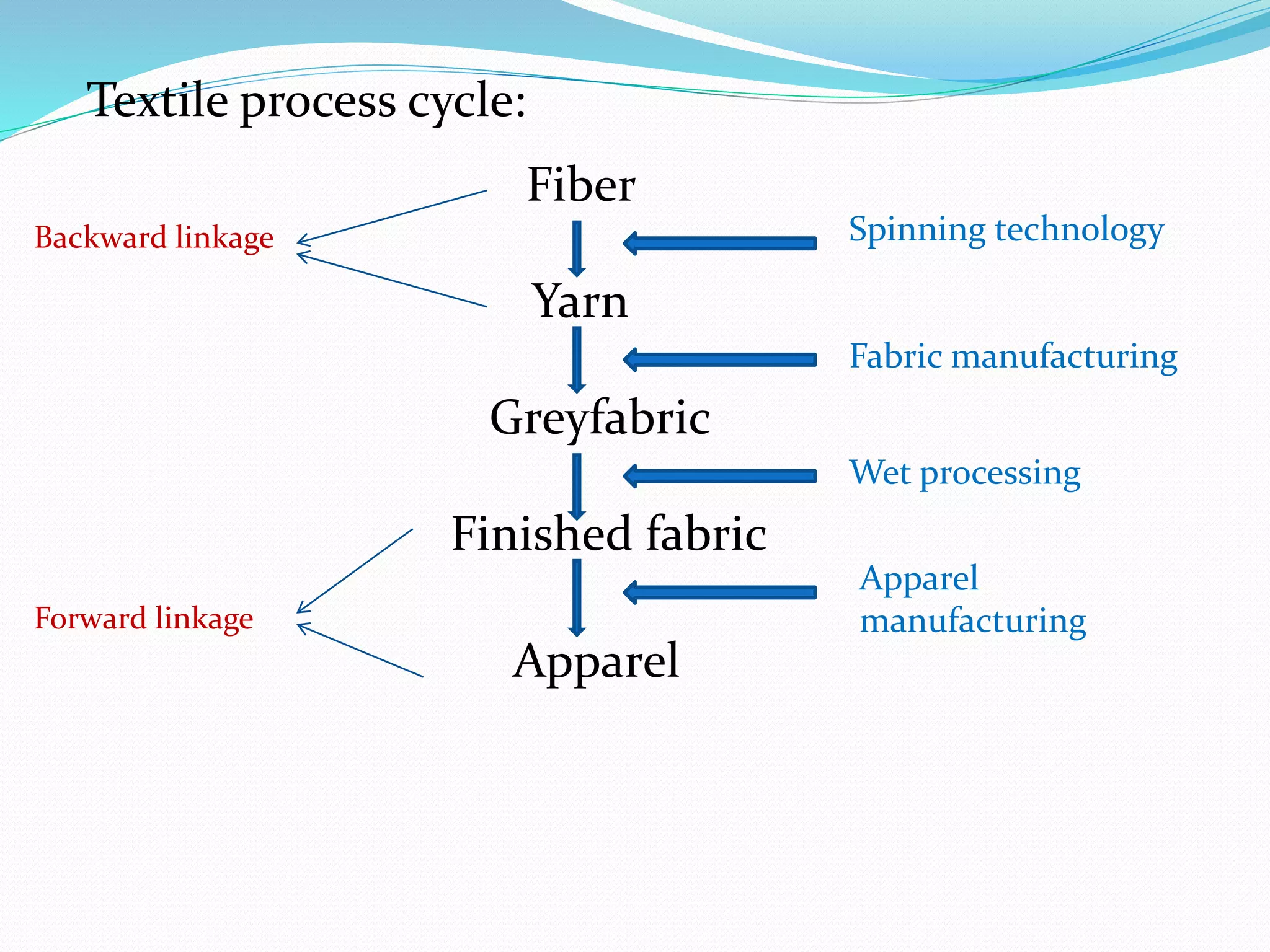 The document summarizes the textile process cycle from fiber to finished apparel. It describes the key stages as fiber, yarn production, grey fabric, finished fabric, and apparel manufacturing. It then provides more details on specific textile manufacturing processes like weaving, knitting, braiding, and non-woven production. Finally, it outlines some preparatory weaving processes like winding, warping, sizing, drafting, and denting.