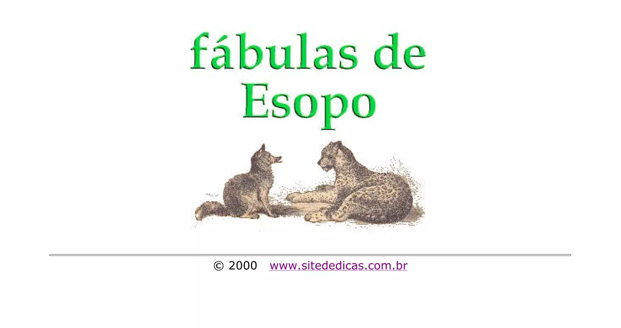 Este documento é um livro de fábulas ilustradas compilado por Alberto Jorge Filho para educar crianças. Ele contém nove fábulas clássicas de Esopo com belas ilustrações, e convida os leitores a visitarem o site do compilador para lerem mais histórias.