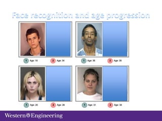 This document discusses issues with biometrics technologies, specifically face recognition. It provides an overview of image issues including resolution, orientation, scale, lighting, image currency, and facial expressions. It also discusses privacy issues regarding video surveillance and personal data security. The document outlines the typical stages of identification/authentication technologies and notes some common places public assumes they are under video surveillance like stores, banks, and gas stations. It closes by stating biometrics will be widespread but users should be aware of its issues and limitations.