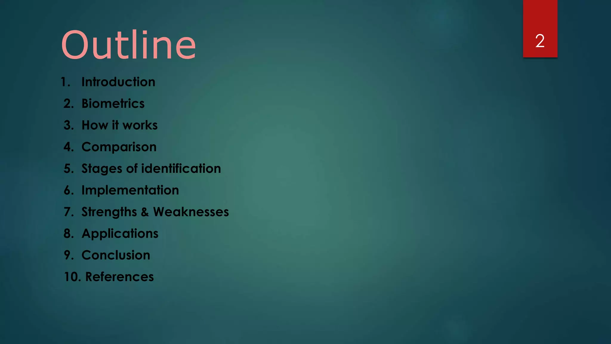 Face recognition is a computer application that automatically identifies or verifies an individual from a digital image or video footage. It works by detecting faces, aligning and normalizing them, representing the facial features with unique codes, and then matching new images to stored facial data. It has various applications including commercial uses like daycare sign-in/out systems, residential security cameras, and banking ATMs. While fast and convenient, face recognition has disadvantages like being impacted by changes in appearance and an inability to distinguish identical twins.