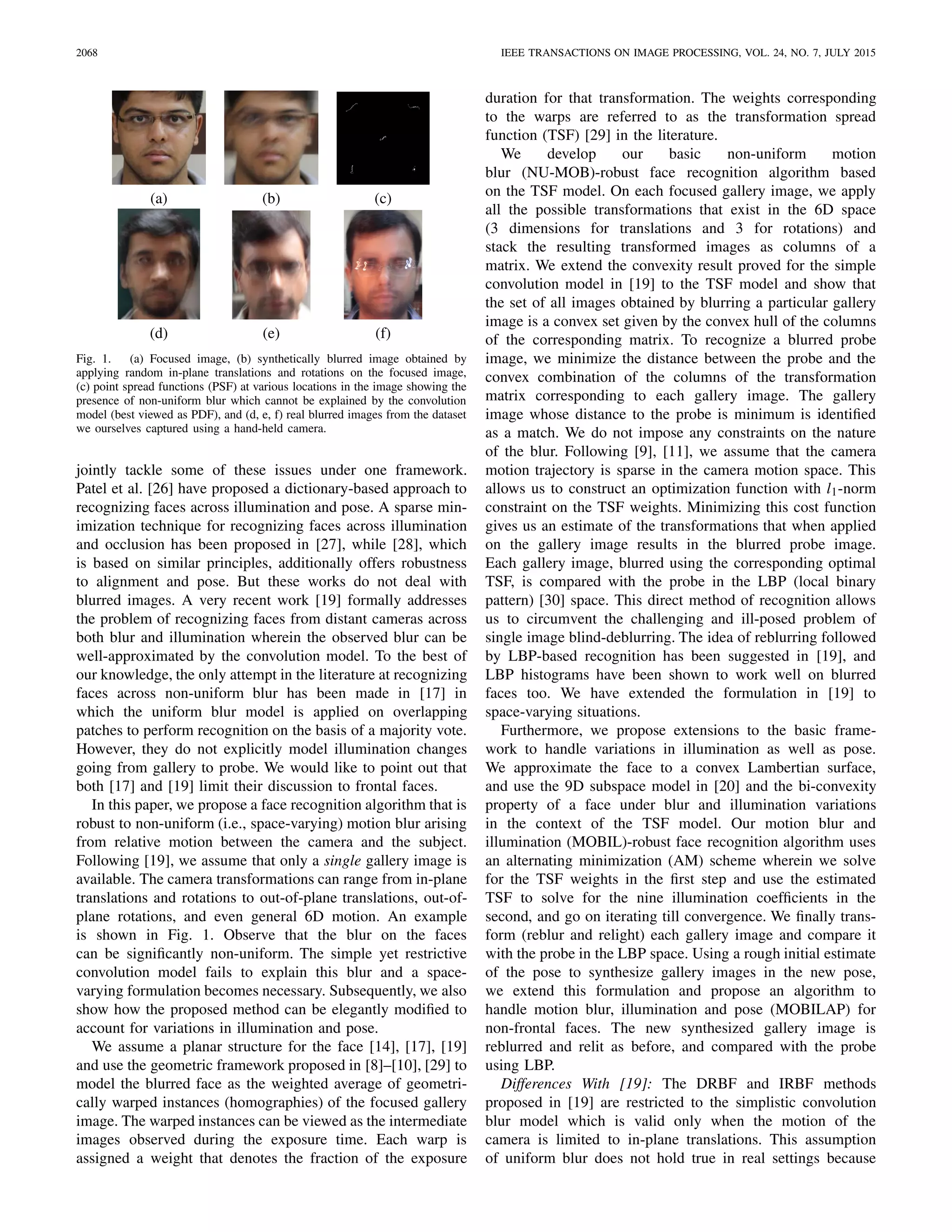 This document summarizes a research paper that proposes a new methodology for face recognition in the presence of non-uniform (space-varying) motion blur. The key points are: