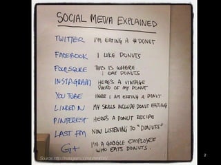 The document outlines strategies for effective social media usage, emphasizing the importance of authenticity, approachability, and community interaction over traditional marketing methods. It details planning, content creation, and measurement techniques while highlighting best practices on platforms like Facebook, particularly focusing on the value of visual content. The guidance includes optimizing post times, engaging with followers, and leveraging cultural moments for greater impact.