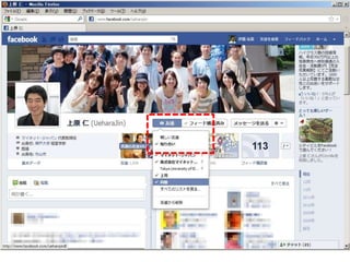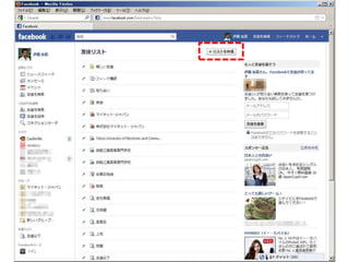 る機能 • あまりにも使われなかったせいか、 facebookのアップデートが進むにつれ隅に 追いやられてしまった不遇な存在 • でも「情報の共有範囲」に神経質な人に とっては非常に便利な機能