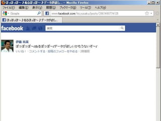 プデート」になる。 • あとはfacebookの表示対象選定エンジン任 せ