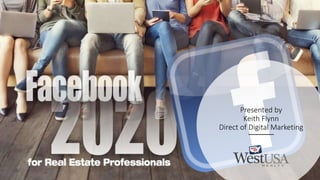 The document provides tips for real estate agents to grow their business using Facebook groups. It recommends that agents build relationships in local groups, share high-value content, and establish themselves as trusted peers. Key tips include focusing content on the local community, claiming a niche, using video and live streaming which keep viewers engaged, leveraging voice assistants like Alexa to provide property updates, and starting a podcast for educational content. The presenter, Keith Flynn, provides his contact details for agents seeking more information.
