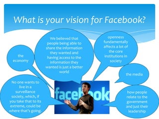Facebook generates revenue through various advertising methods. Self-service ads on the right side of the Facebook page accounted for $250-300 million in 2009. Engagement ads that seek user interaction brought in $100 million. Microsoft pays Facebook $50 million as part of a 2007 ad deal to sell ads on the platform. Facebook Gifts and virtual goods generated $30-50 million in revenue. Overall Facebook revenues reached $500 million in 2009 and were expected to reach $800 million in 2010, demonstrating strong growth.