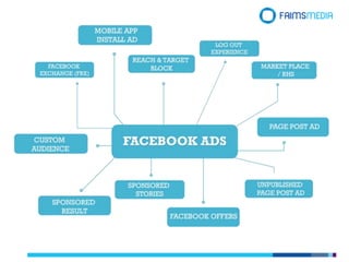 3. Facebook Offers, Sponsored Stories, Sponsored Results, and Custom Audiences allow targeting of specific groups through interests, behaviors, and uploaded contact lists.