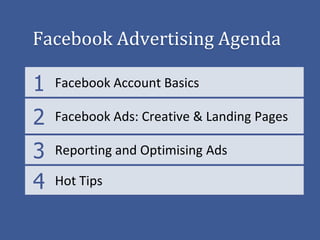 The document is a comprehensive guide on Facebook advertising, covering account setup, types of ads, and steps for effective ad creation. It emphasizes the importance of targeting, creating appealing visuals, and optimizing performance through various strategies. Additionally, it includes tips for maximizing click-through rates and managing budgets for successful advertising campaigns.