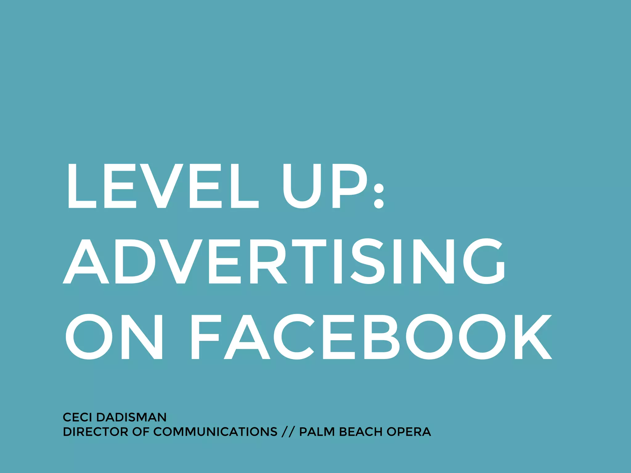 Ceci Dadisman provides tips for using Facebook advertising effectively in 4 steps: 1) Plan the campaign goals and content, 2) Target the right audiences through location, demographics, interests and custom audiences, 3) Create engaging ad content with copy, images and videos, 4) Set up ads such as sponsored posts and sidebar ads. She offers to help with any Facebook advertising questions.