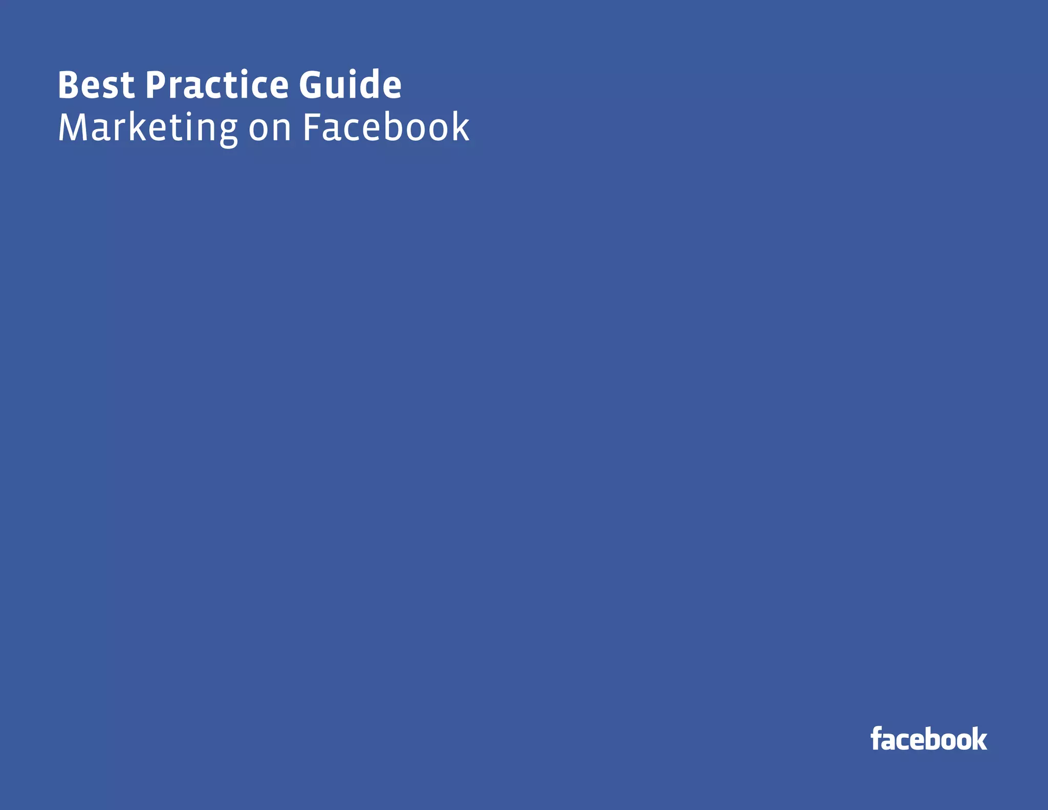 This best practice guide provides strategies for using Facebook effectively for marketing. It outlines five guiding principles for an authentic social media strategy: being social by design, having an authentic brand voice, being interactive, nurturing relationships, and continuous learning. It then details how Facebook can be used to foster various business objectives like generating awareness, driving traffic/sales, building loyalty, and gaining insights. Helpful resources are also mentioned.