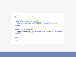 - Facebook Markup Language (FBML) allows customizing the look and feel of applications and accessing social data.