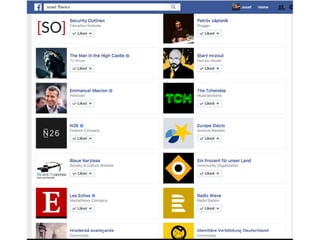 This document discusses Facebook data mining and presents case studies analyzing user behavior and page affinity on Facebook. It introduces a framework for measuring distance between pages based on overlapping active users and analyzing fan affinity based on fan information and post-page overlap. Several apps and insights are shared, including analyzing "blue feed vs red feed" and visualizing matrices of page distances and post overlaps. The presentation ends by thanking the audience and providing contact information.