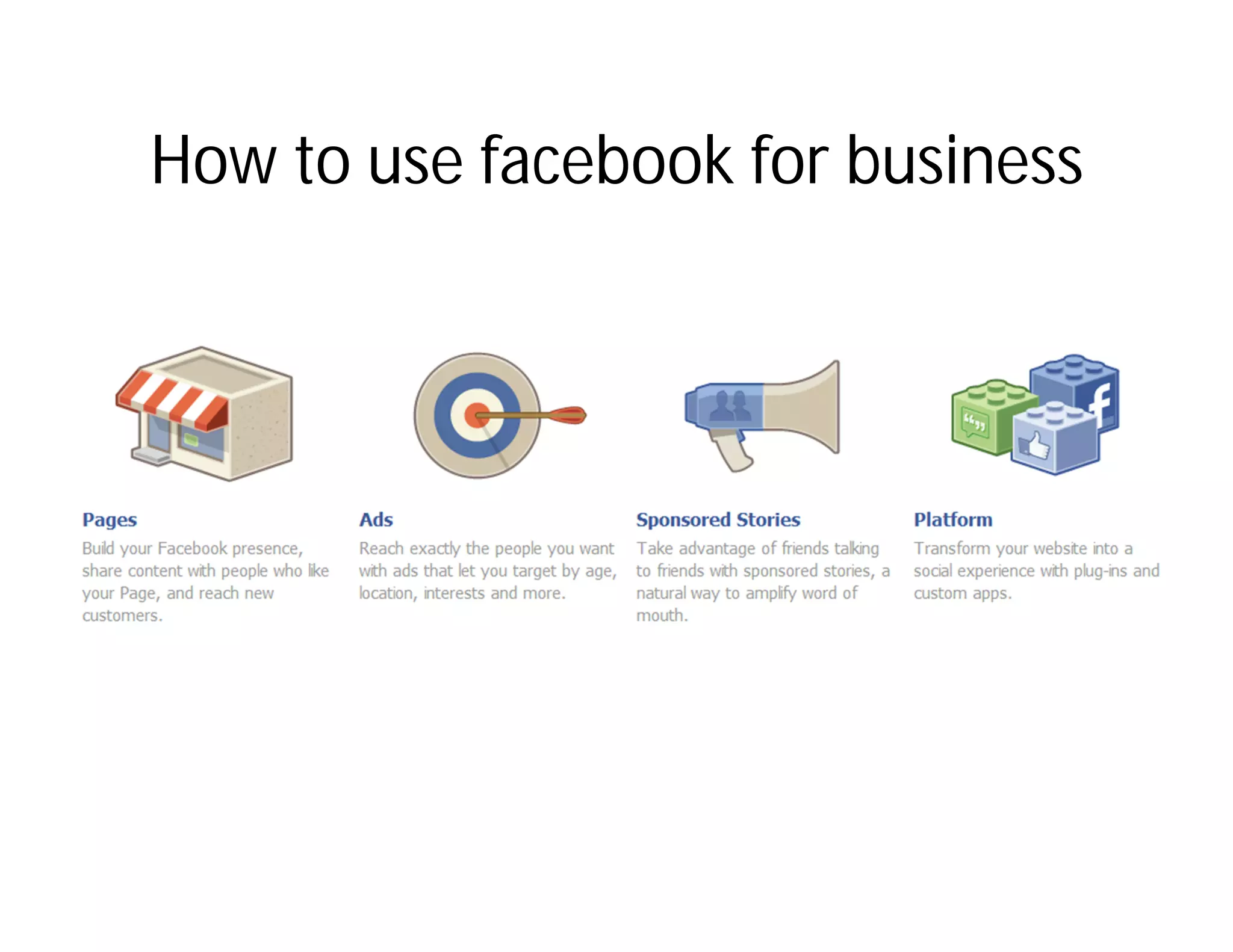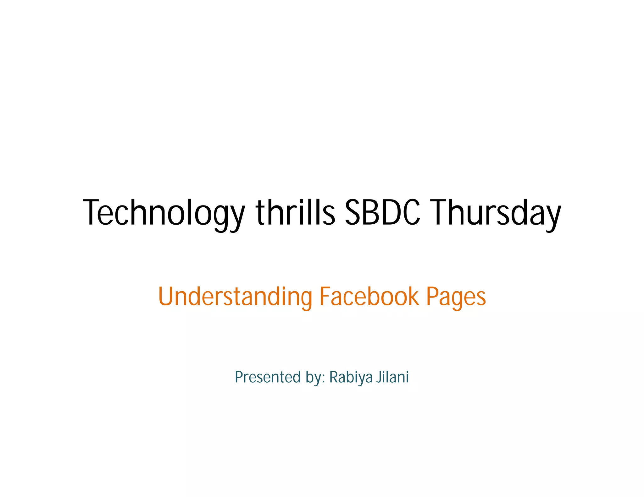 The document discusses how to use Facebook pages effectively for businesses. It provides tips on using social plugins, customizing pages with profile photos, cover photos, posts and other features. Admins can control content, view insights and respond to messages. Facebook pages allow businesses to connect with customers and share their story. The presentation encourages attendees to like their local SBDC page for more resources on using Facebook for business.