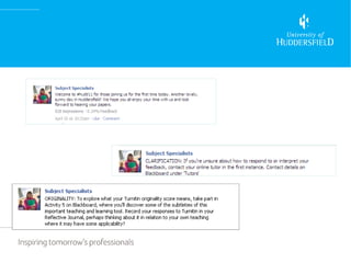 This document discusses using Facebook in educational contexts. It notes that students are increasingly using online tools and have high levels of technology access. While students are often characterized as "digital natives," research finds their skills are more varied. The document explores using Facebook for a specialist conference module and hospitality placements to facilitate inter-year support and engagement through groups, images, and connections. It analyzes the educational affordances and challenges of using Facebook, such as managing privacy and constraints.