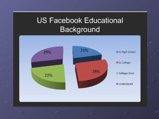 The document provides information on using Facebook for advertising and marketing purposes. It discusses the advantages of Facebook advertising including brand awareness, driving web traffic, customer engagement, reputation management, lead generation, and acquiring new customers. It also outlines how to create Facebook ads, target audiences, set pricing and campaigns, analyze advertising reports, and common dos and don'ts for Facebook ads.