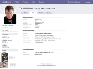This document appears to be a collection of Facebook profiles for characters from the novel The Outsiders by S.E. Hinton. It includes profiles for Ponyboy Curtis, Sodapop Curtis, Darry Curtis, Two-Bit Mathews, Steve Randle, and Johnny Cade. The profiles provide basic information about each character such as their birthday, hometown, interests and include posts on their walls.