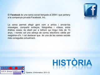 El Facebook ésuna xarxa social llançada al 2004 i que pertany