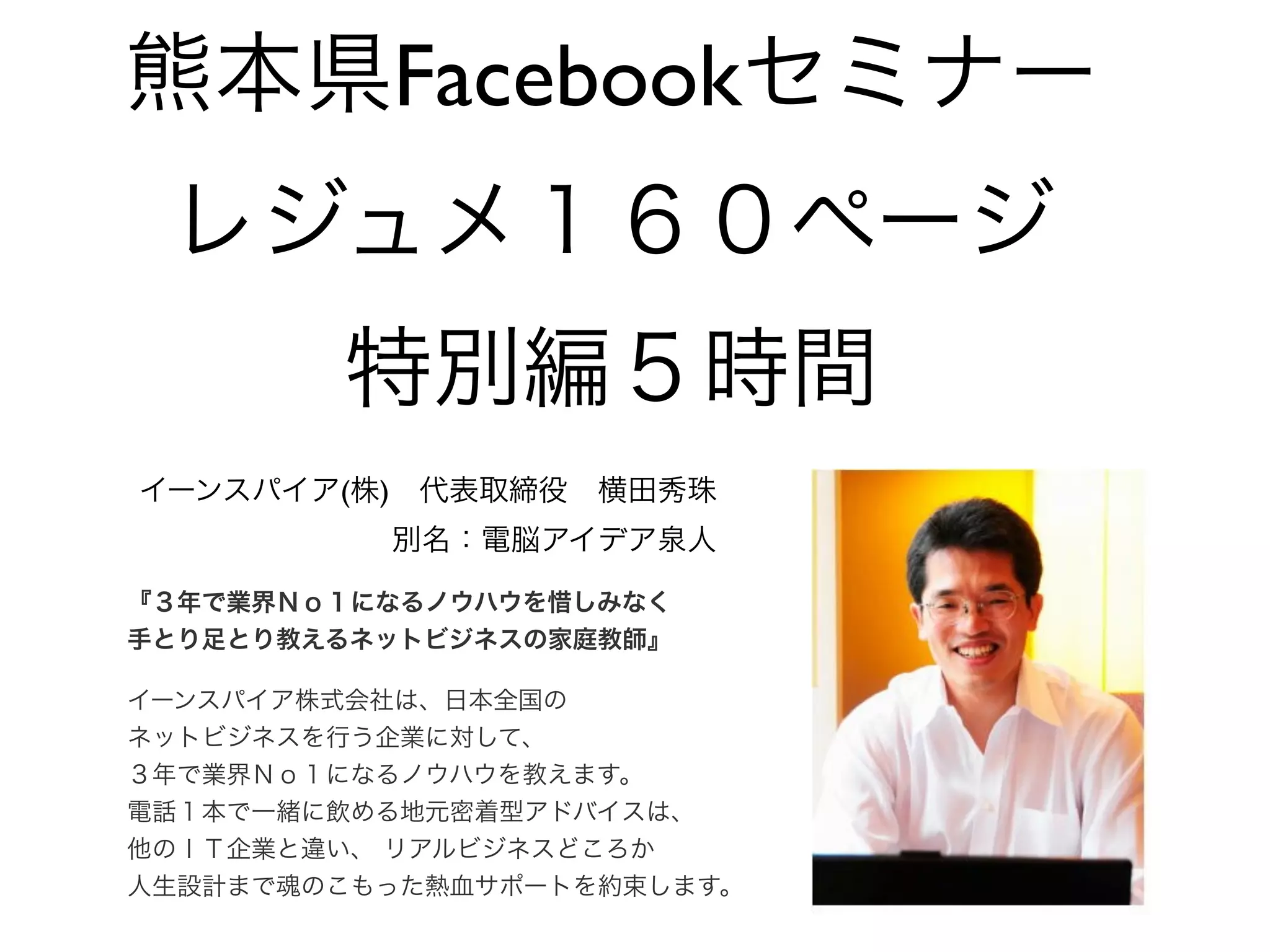 https://www.facebook.com/photo.php?fbid=278259628858762 イーンスパイア(株) 横田秀珠の著作権を尊重しつつ、是非ノウハウはシェアして行きましょう。 144