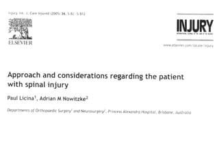 This document discusses the initial management and treatment of cervical spine facet dislocations. It provides guidelines for evaluation including imaging based on neurological status. Reduction techniques discussed include gradual traction, rapid reduction, and manipulation under general anesthesia. The role of MRI is debated, with most recommending MRI for incomplete neurological injuries before reduction. Anterior discectomy and fusion or posterior fusion are discussed as surgical stabilization options after reduction.