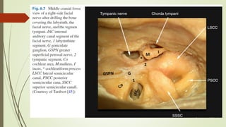 The document provides information on the facial nerve (CN VII) including its anatomy, branches, segments, development and disorders. Some key points: