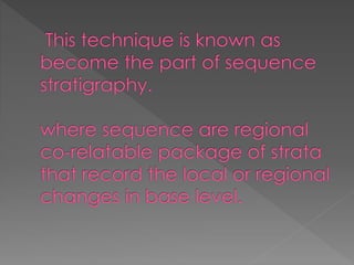 Walther's Law of Facies states that the vertical succession of rock layers reflects lateral changes in depositional environment over time. As environments migrate across the landscape, the sediments deposited in different environments become stacked on top of each other according to their distribution. This law is widely used in sedimentary geology to interpret depositional settings from vertical rock sequences and construct paleogeographic maps. However, it only applies where rock layers are conformable without gaps in deposition. An example of Walther's Law is how a vertical succession of limestone over shale over sandstone can indicate a transgressive sequence as a shallow sea advanced over the landscape.