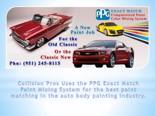 Kevin Linehan manages Collision Pros Auto Body and Paint located in Lake Elsinore, CA. The body shop has 14 working bays across its 8,100 square foot facility equipped with professional tools and equipment for frame repair, painting, and mechanical work. Collision Pros offers services like estimates, claims processing, and vehicle storage with a maximum monthly repair capacity of $500,000.