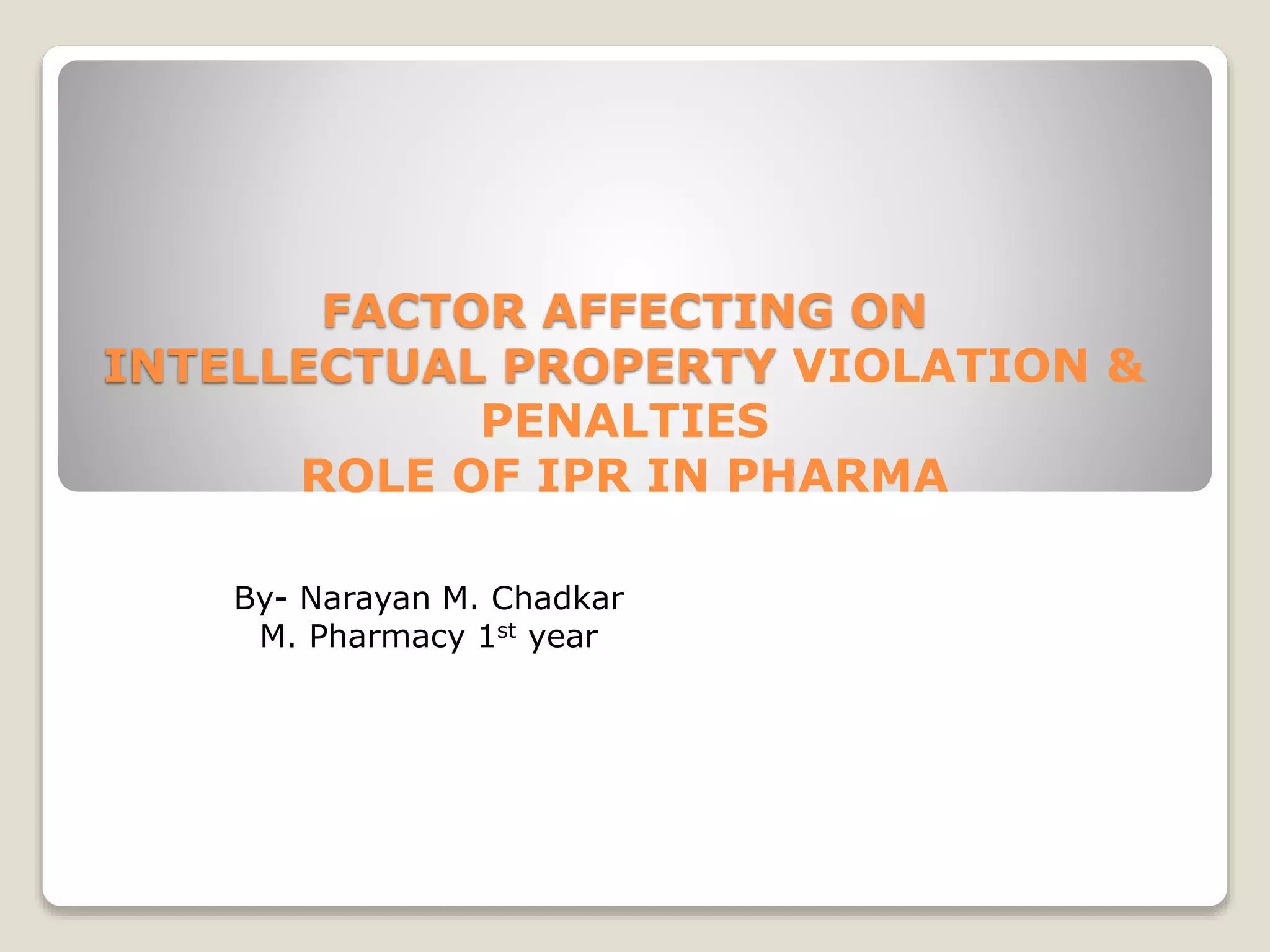 FACTOR AFFECTING ON INTELLECTUALPROPERTY VIOLATION & PENALTIES ROLE OF IPR IN PHARMA By- Narayan M. Chadkar M. Pharmacy 1st year