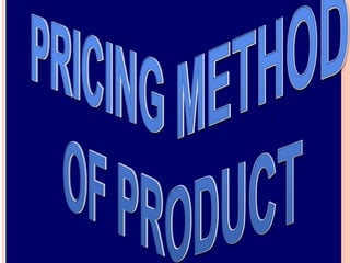 This document discusses various factors that affect pricing of products and different pricing methods. It outlines internal factors like product costs, quality and external factors like competition, demand. Pricing methods covered include cost-based pricing using cost-plus or mark-up approaches, competition-based pricing by considering competitors' prices, and other methods like value, target return, going rate and transfer pricing. The key factors and various pricing strategies are compared and explained with examples.