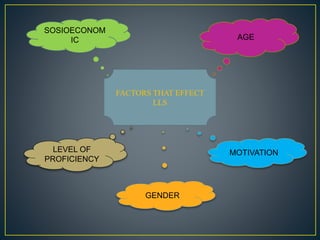Several factors affect language learners' use of language learning strategies (LLS), including: