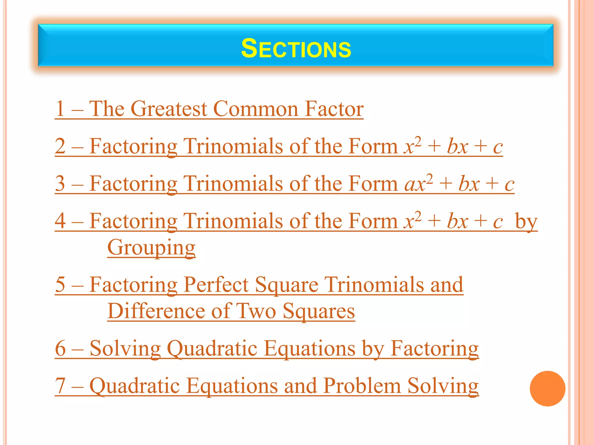 2) It describes how to factor trinomials of the form x2 + bx + c by finding two numbers whose sum is b and product is c.